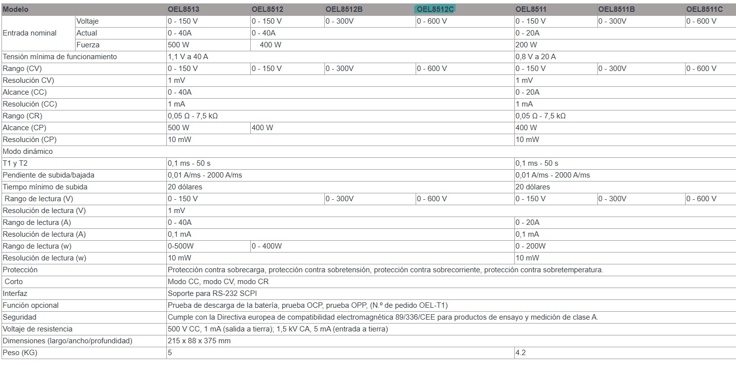 Carga Electrónica de CC Programable 600v 40a Owon Oel8512C