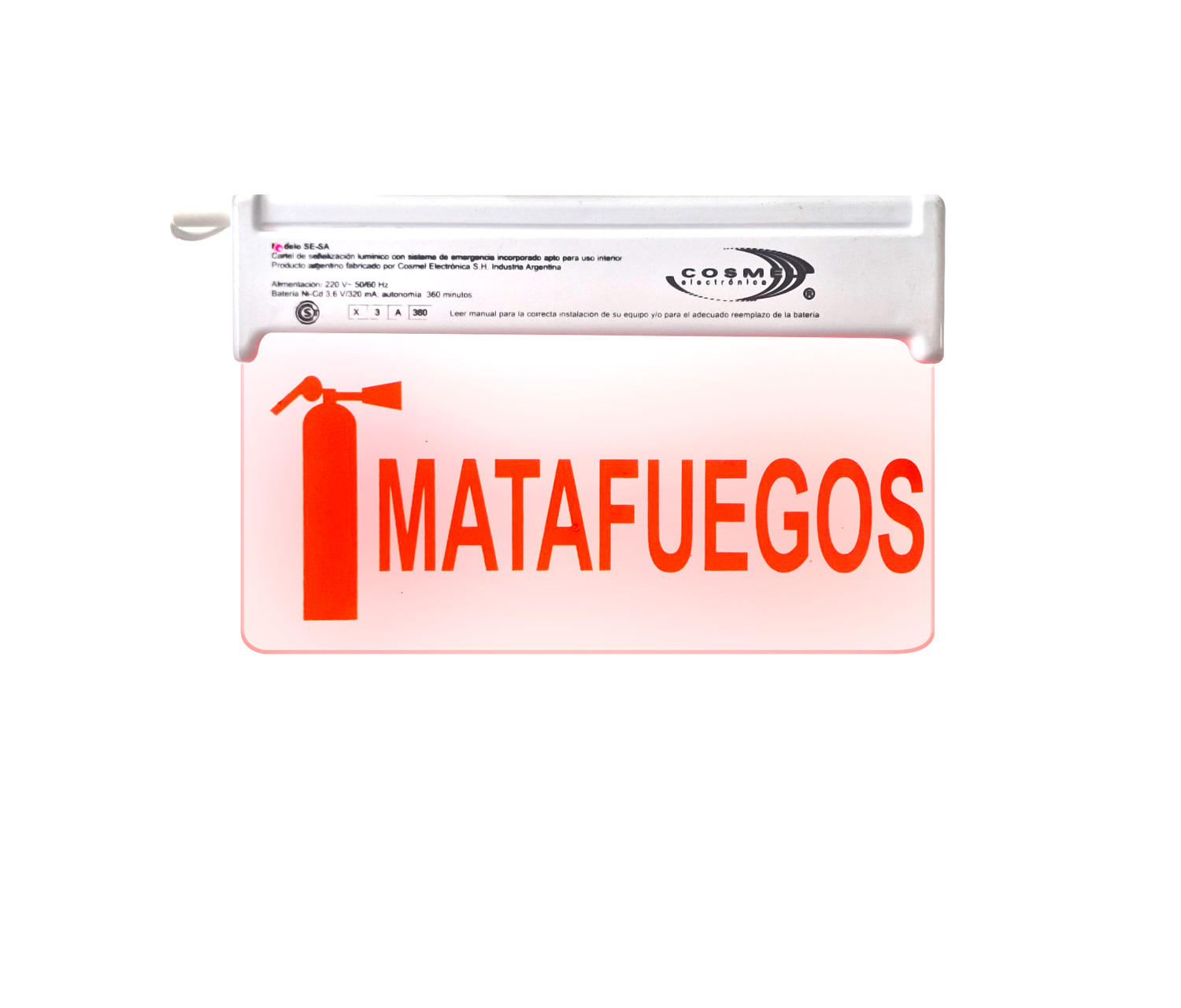 - Acrílico con la señal deseada (amplia disponibilidad de señales). Dispositivo de funcionamiento electrónico con conexión a 220 V~ sistema de iluminación de emergencia incorporado